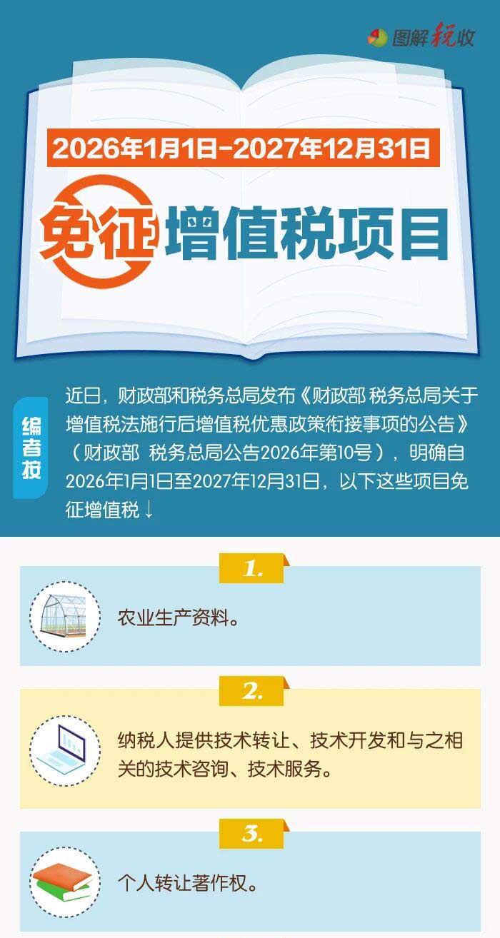 一图了解:2026年1月1日至2027年12月31日,这些项目免征增值税